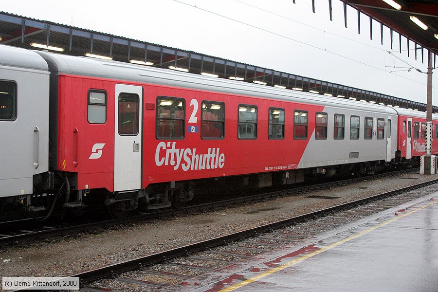 | ÖBB - 50812173352-3 Wagen 50 81 21 73352-3 (Typ Bmpz-l) in Wien Südbahnhof, aufgenommen morgens am kalten und regnerischen 16. September 2008. Photo: Bernd Kittendorf (info@bernd-kittendorf.de) Homepage: www.bernd-kittendorf.de |