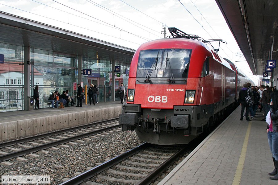 | ÖBB - 1116128-8 Lok 1116 128-8 beim Halt in Baden, aufgenommen am 14. März 2011. Photo: Bernd Kittendorf (info@bernd-kittendorf.de) Homepage: www.bernd-kittendorf.de |