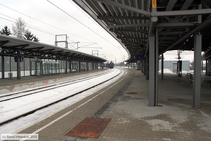 | Bahnhof Graz Don Bosco Bahnsteige und Gleise der Steirischen Ostbahn an der Haltestelle Graz Don Bosco, aufgenommen am 04. Februar 2010. Die Strecke wird hinter der Kurve eingleisig. Photo: Bernd Kittendorf (info@bernd-kittendorf.de) Homepage: www.bernd-kittendorf.de |