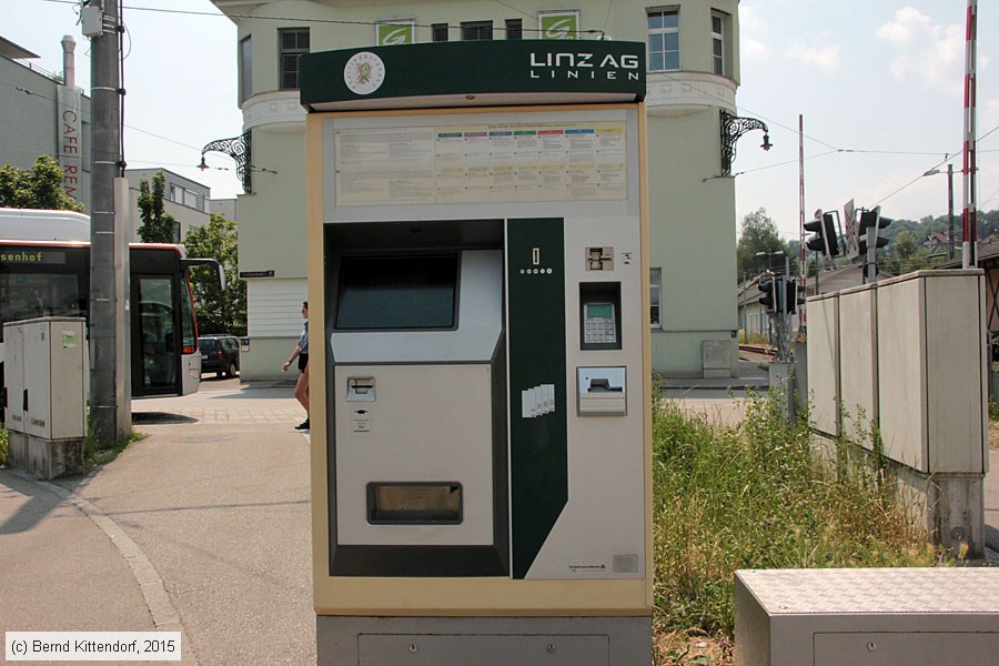 | Linz - Straßenbahn - Anlagen Fahrkartenautomat an der Haltestelle Landgutstraße, aufgenommen am 06. Juli 2015. Photo: Bernd Kittendorf (info@bernd-kittendorf.de) Homepage: www.bernd-kittendorf.de |