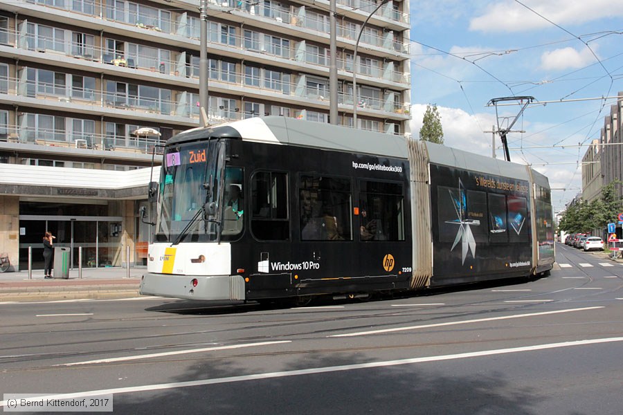 | Straßenbahn Antwerpen - 7209 Triebwagen 7209 auf Linie 8 nach Zuid bei der Ankunft an seiner Endstelle, aufgenommen am 22. August 2017. Photo: Bernd Kittendorf (info@bernd-kittendorf.de) Homepage: www.bernd-kittendorf.de |