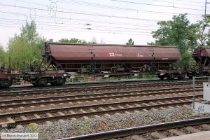 Wagen 31 54 3937 499-4 CZ-ČDC (Typ Res320, 19,90 m lang, beladen mit Radsätzen) in einem Güterzug bei der Fahrt durch Ludwigshafen Mitte, aufgenommen am 24. Juli 2012.
