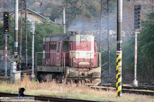 Lok 742 302-3 im Bahnhof Praha-Libeň, aufgenommen am 21. Oktober 2011.
