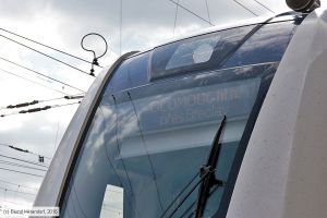 Linien- und Fahrtzielanzeige in LED-Technik vorn am Triebwagen 661 104-0, aufgenommen in Brno Hlavní nádraží am 30. August 2016. Der Triebzug ist auf Linie R5 nach Olomouc Hlavní nádraží im Einsatz.
