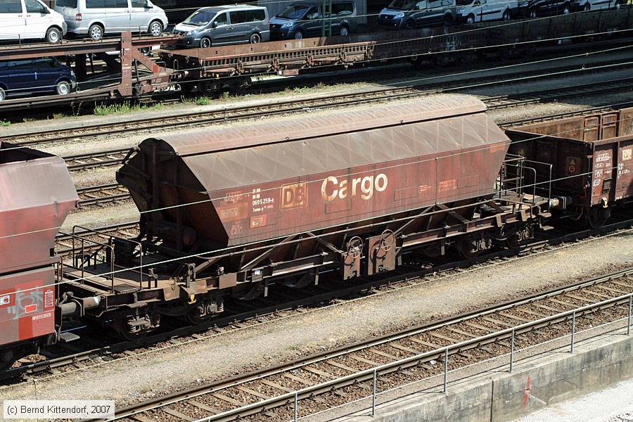 | Deutsche Bahn - 31800695259-8 Güterwagen 31 80 0695 259-8 (Typ Taoos-y894), aufgenommen in Mannheim Rangierbahnhof am 30. April 2007. Photo: Bernd Kittendorf (info@bernd-kittendorf.de) Homepage: www.bernd-kittendorf.de |