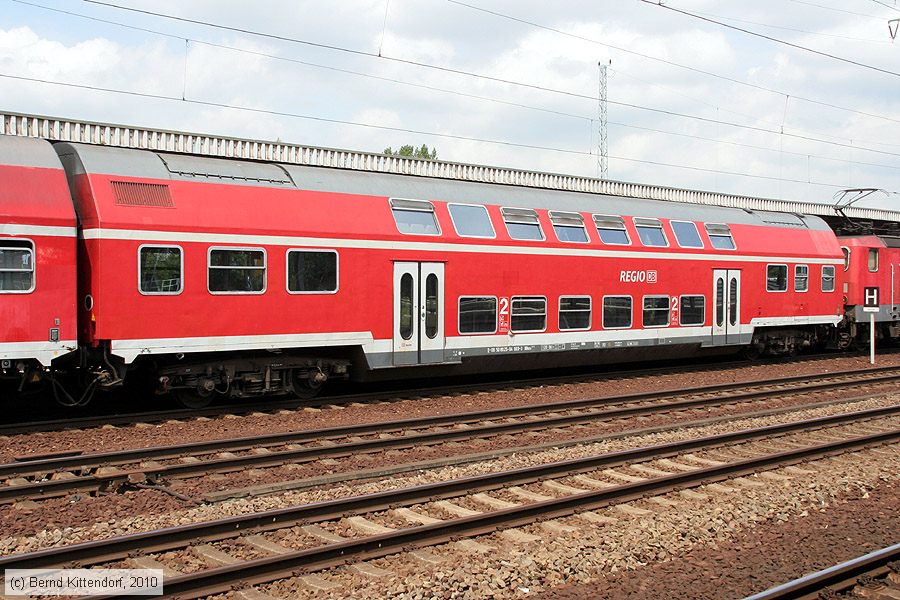 | Deutsche Bahn - 50802504003-3 Doppelstockwagen 50 80 25 04003-3 D-DB (Typ DBuza747.5, zugelassen für 120 km/h) im Bahnhof Berlin Schönefeld Flughafen, aufgenommen am 15. Juni 2010. Diese Bauart hat Tiefeinstiege, die auf der unteren Ebene neben den Drehgestellen angeordnet sind. Photo: Bernd Kittendorf (info@bernd-kittendorf.de) Homepage: www.bernd-kittendorf.de |