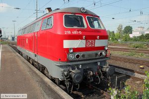 Lok 218481-0 in Ludwigshafen (Rhein) Hauptbahnhof, aufgenommen am 28. Mai 2011.