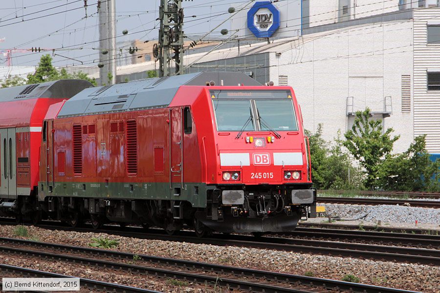| Deutsche Bahn - 245 015 Lok 92 80 1245 015-3 D-DB beim Passieren des Bahnhofs München Heimeranplatz West, aufgenommen am 13. Mai 2015. Diese Lokomotive wurde im Jahr 2014 von Bombardier gebaut. Photo: Bernd Kittendorf (info@bernd-kittendorf.de) Homepage: www.bernd-kittendorf.de |