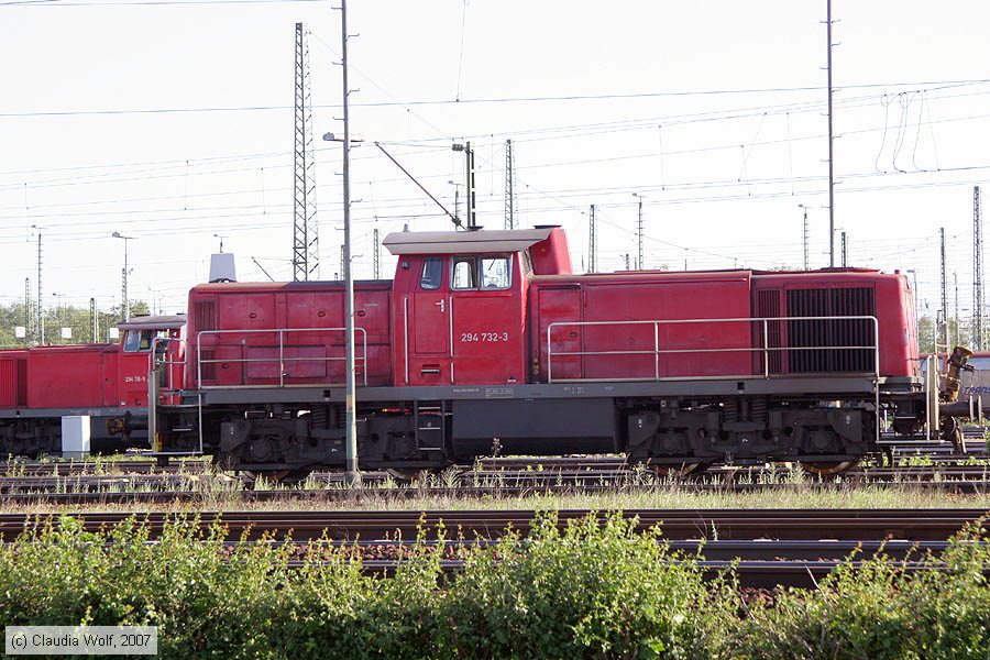 | Deutsche Bahn - 294732-3 Lok 294732-3 in Mannheim Rangierbahnhof, aufgenommen am 30. April 2007. Photo: Claudia Wolf (info@claudia-blondie-wolf.de) Homepage: www.claudia-blondie-wolf.de |