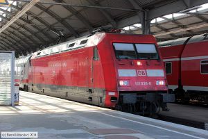 Lok 101 038-8 in Halle (Saale) Hauptbahnhof, aufgenommen am 28. August 2014.
