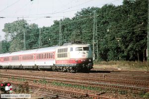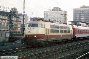 Lok 103110-3 (Hersteller Henschel (Kassel) und Siemens, Baujahr 1970) in Essen Hauptbahnhof, aufgenommen am 20. April 1995.
