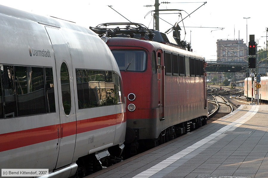 | Deutsche Bahn - 115327-9 Lok 115327-9 vor ICE-Triebwagen 411080-5 (links im Bild) in Mannheim Hauptbahnhof, aufgenommen am 14. Juli 2007. Photo: Bernd Kittendorf (info@bernd-kittendorf.de) Homepage: www.bernd-kittendorf.de |