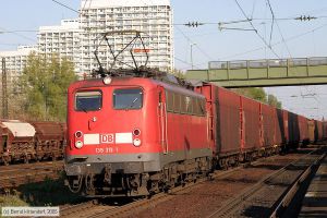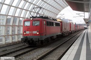 Lok 139311-5 mit einem Güterzug bei der Fahrt durch Ludwigshafen Mitte, aufgenommen am 25. Oktober 2006.
