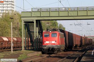 Güterzug mit Lok 139313-1 bei der Fahrt durch den Bahnhof Ludwigshafen Oggersheim auf Gleis 2, aufgenommen am 21. April 2005.