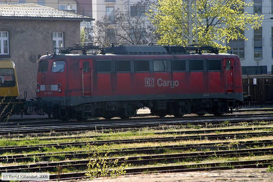 | Deutsche Bahn - 140170-2 Lok 140170-2 in Frankfurt (Oder), aufgenommen am 23. April 2005. Photo: Bernd Kittendorf (info@bernd-kittendorf.de) Homepage: www.bernd-kittendorf.de |