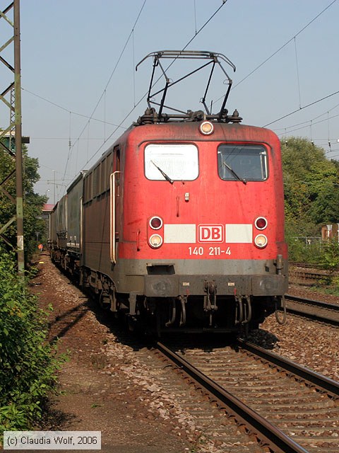 | Deutsche Bahn - 140211-4 Lok 140211-4 in Ludwigshafen Oggersheim, aufgenommen am 13. September 2006. Photo: Claudia Wolf (info@claudia-blondie-wolf.de) Homepage: www.claudia-blondie-wolf.de |