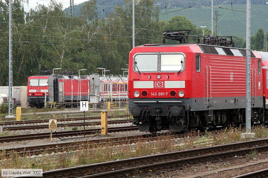 | Deutsche Bahn - 143091-7 Lok 143 091-7 in Heilbronn Hauptbahnhof, aufgenommen am 08. September 2007. Photo: Claudia Wolf (info@claudia-blondie-wolf.de) Homepage: www.claudia-blondie-wolf.de |