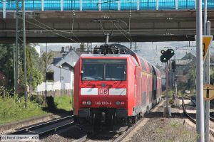 Lok 146 010 bei der Fahrt durch den Bahnhof Weißenthurm, aufgenommen am 01. Oktober 2011.