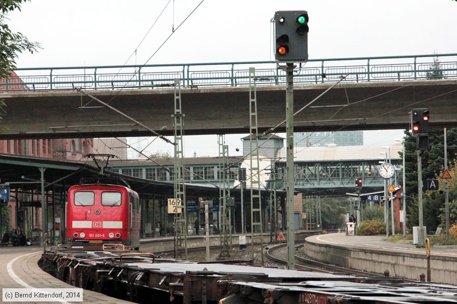 | Deutsche Bahn - 151001-5 Lok 151 001-5 mit einem Güterzug bei der Fahrt durch den Bahnhof Hamburg-Harburg auf Gleis 5, aufgenommen am 15. Oktober 2014. Photo: Bernd Kittendorf (info@bernd-kittendorf.de) Homepage: www.bernd-kittendorf.de |