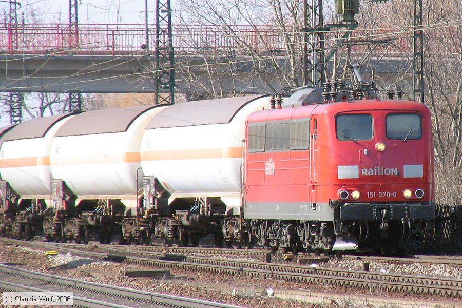 | Deutsche Bahn - 151070-0 Güterzug mit Lok 151070-0 in Ludwigshafen Oggersheim, aufgenommen am 20. März 2006. Photo: Claudia Wolf (info@claudia-blondie-wolf.de) Homepage: www.claudia-blondie-wolf.de |