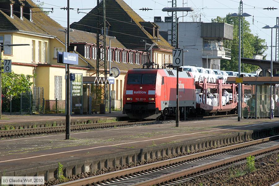 | Deutsche Bahn - 152091-5 Lok 152091-5 mit einem Güterzug bei der Fahrt durch den Bahnhof Mannheim Friedrichsfeld, aufgenommen am 21. Mai 2010. Photo: Claudia Wolf (info@claudia-blondie-wolf.de) Homepage: www.claudia-blondie-wolf.de |