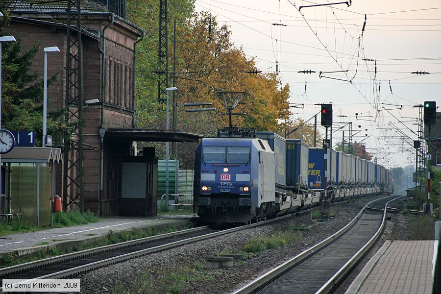 | Deutsche Bahn - 152136-8 Lok 152136-8 mit einem Güterzug bei der Fahrt durch den Bahnhof Ladenburg auf Gleis 1, aufgenommen am 28. Oktober 2009. Photo: Bernd Kittendorf (info@bernd-kittendorf.de) Homepage: www.bernd-kittendorf.de |
