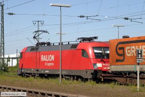 Lok 182002-6 bei der Fahrt durch den Bahnhof Weißenthurm, aufgenommen am 22. Juni 2010.