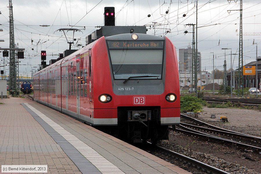 | Deutsche Bahn - 425123-7 Triebwagen 425123-7 in Mannheim Hauptbahnhof auf Gleis 10, aufgenommen am 06. November 2013. Photo: Bernd Kittendorf (info@bernd-kittendorf.de) Homepage: www.bernd-kittendorf.de |