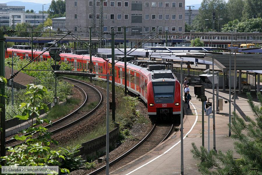 | Deutsche Bahn - 425707-7 Triebwagen 425 707-7 in Ludwigshafen (Rhein) Hauptbahnhof auf Gleis 3, aufgenommen am 15. August 2011. Das für Zugdurchfahrten genutzte Gleis links davon wird als Gleis 13 bezeichnet. Photo: Claudia Kittendorf-Wolf (info@claudia-blondie-wolf.de) Homepage: www.claudia-blondie-wolf.de |