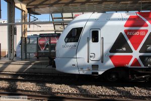 Triebwagen 429 107-6 in Mannheim Hauptbahnhof auf Gleis 9, aufgenommen am 15. August 2015. Die Linien- und Fahrtzielanzeige zeigt SÜWEX. Unter dem Markennamen SÜWEX (für Südwest-Express) führt die DB Regio seit Dezember 2014 für Aufgabenträger des Schienenpersonennahverkehrs in Rheinland-Pfalz, dem Saarland und Teilen von Baden-Württemberg und Hessen schnellen Regionalverkehr durch.