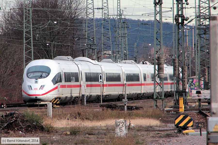 Deutsche Bahn - 403503-6 ICE-Triebwagen 93 80 5403 503-6 D-DB (links im Bild) bei der Abfahrt in Karlsruhe Hauptbahnhof, aufgenommen am 07. Januar 2014. Photo: Bernd Kittendorf (info@bernd-kittendorf.de) Homepage: www.bernd-kittendorf.de |