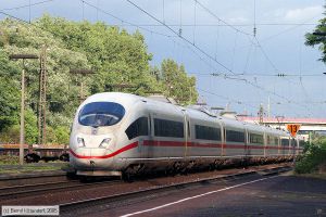 ICE-Triebwagen 403505-1 bei der Fahrt auf Gleis 2 durch den Bahnhof Ludwigshafen Oggersheim, aufgenommen am 01. Juli 2005.