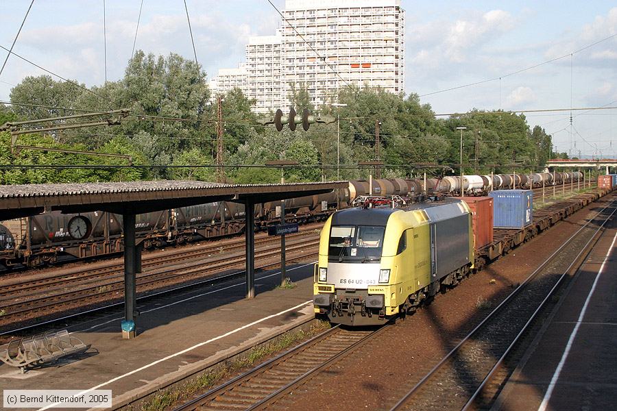 | Dispolok - ES 64 U2-043 Lok ES 64 U2-043 mit einem Güterzug bei der Fahrt durch den Bahnhof Ludwigshafen Oggersheim auf Gleis 2, aufgenommen am 07. Juni 2005. Photo: Bernd Kittendorf (info@bernd-kittendorf.de) Homepage: www.bernd-kittendorf.de |