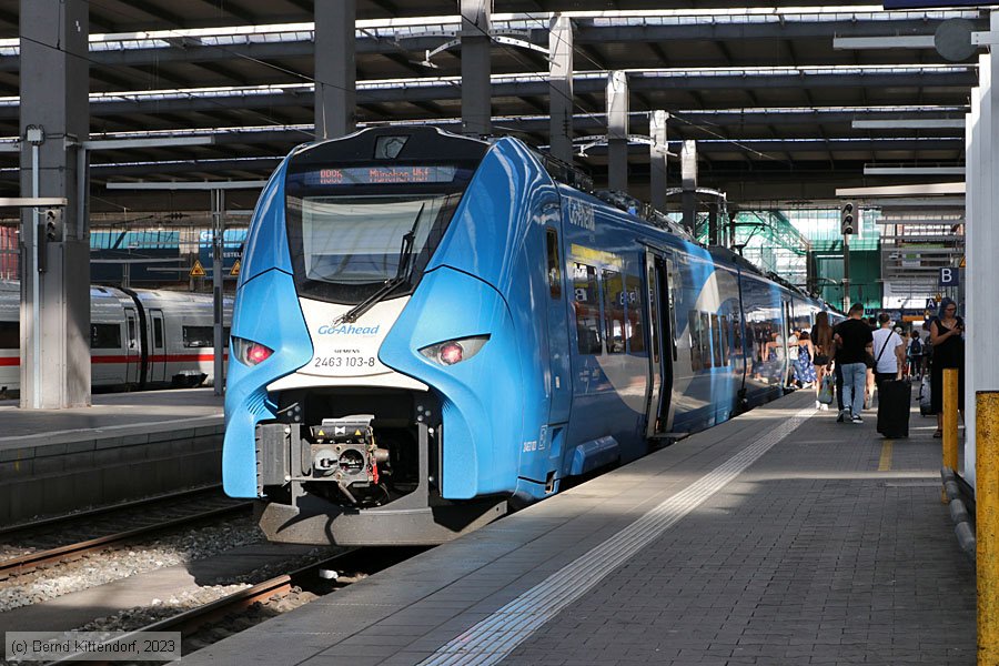 | Go-Ahead Bayern - 2463103-8 Triebwagen 94 80 2463 103-8 D-GABY nach einer Fahrt auf Linie RB86 in München Hauptbahnhof auf Gleis 17, aufgenommen am 19. August 2023. Photo: Bernd Kittendorf (info@bernd-kittendorf.de) Homepage: www.bernd-kittendorf.de |