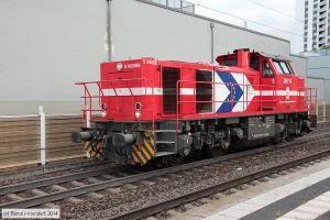 Lok DH 58 (auch mit 1384 beschriftet) bei der Fahrt durch Krefeld Linn, aufgenommen am 15. Februar 2011.