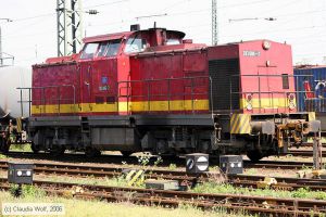 Lok 203006-2 im Bahnhof Ludwigshafen Oggersheim, aufgenommen am 04. Februar 2005. Diese Lok des Typs V 100.1 wurde 1974 gebaut und war zunächst bei der Deutschen Reichsbahn als 110718-4 im Einsatz. Später wurde sie zur 112718-2. Von der DB wurde sie als 202718-3 geführt und 1998 ausgemustert.