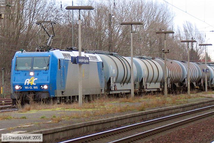 | Rail4Chem - 185-CL 005 Lok 185-CL 005 mit einem Güterzug zur BASF im Bahnhof Ludwigshafen Oggersheim, aufgenommen am 08. Januar 2005. Photo: Claudia Wolf (info@claudia-blondie-wolf.de) Homepage: www.claudia-blondie-wolf.de |