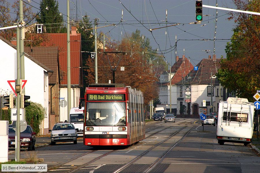 | Rhein-Haardtbahn - 1042 Triebwagen 1042 auf Linie RHB nach Bad Dürkheim in Ludwigshafen Oggersheim, aufgenommen am 31. Oktober 2004. Photo: Bernd Kittendorf (info@bernd-kittendorf.de) Homepage: www.bernd-kittendorf.de |