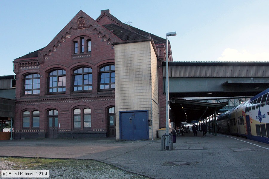 | Bahnhof Hamburg Harburg Gebäude zwischen den Gleisen 3 und 4 (rechts im Bild) im Bahnhof Hamburg Harburg, aufgenommen am 14. Oktober 2014. Photo: Bernd Kittendorf (info@bernd-kittendorf.de) Homepage: www.bernd-kittendorf.de |