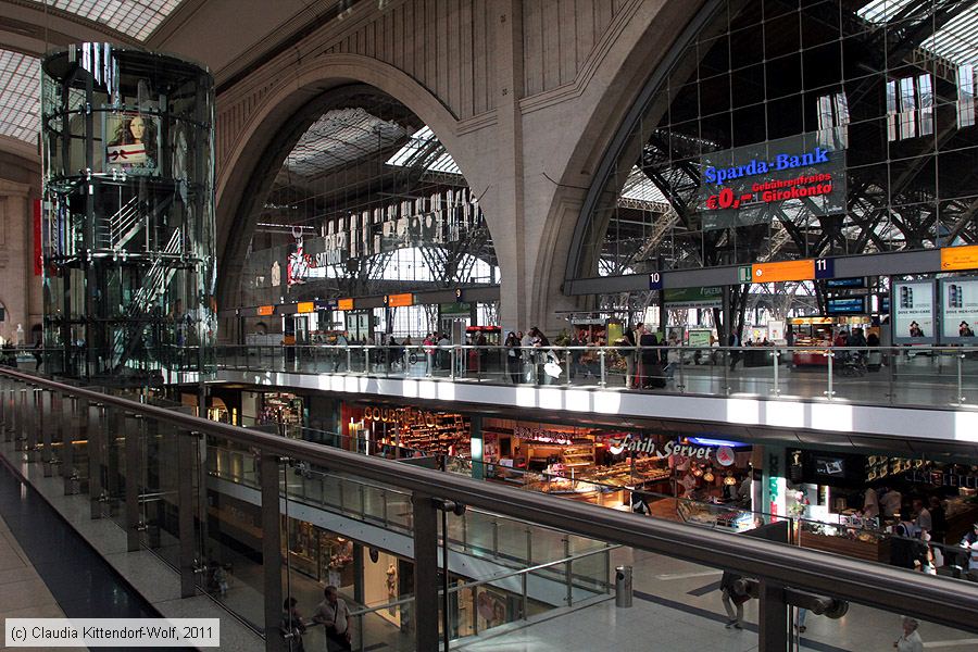 Leipzig Hauptbahnhof Blick auf das Kaufhaus mit Gleisanschluß, aufgenommen am 04. Oktober 2011. Photo: Claudia Kittendorf-Wolf (info@claudia-blondie-wolf.de) Homepage: www.claudia-blondie-wolf.de |