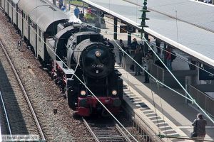 Dampflokomotive 52 4867 bei einem Einsatz in Neustadt (Weinstraße) Hauptbahnhof auf Gleis 3, aufgenommen am 31. Mai 2014. Weil mehrere Dampfloks im Einsatz zu sehen waren, kamen zahlreiche Eisenbahnfreunde an diesem Tag nach Neustadt und Umgebung.