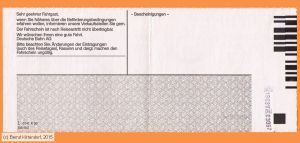 Rückseite eines Vordrucks L 6141 K 90 (06/94), der am 11. Februar 1995 am Schalter in Mannheim Hauptbahnhof für ein Wochenendticket 5 verwendet wurde.