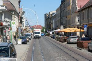 Strecke durch die Innenstadt bei der Haltestelle Hauptstraße, aufgenommen am 16. Juni 2010.