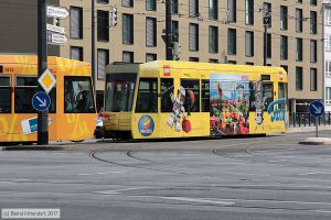 Beiwagen 9447 auf Linie 3 bei der Haltestelle Hauptbahnhof, aufgenommen am 07. Mai 2006.