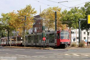 Triebwagen 4278 mit Triebwagen 4230 (links am Bildrand) auf Linie U76 nach Düsseldorf Hauptbahnhof in Krefeld beim Hauptbahnhof, aufgenommen am 14. März 2006.