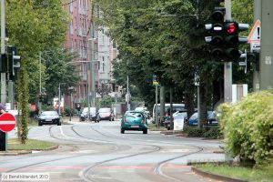 Gleise bei der Haltestelle Lutherplatz, aufgenommen am 02. September 2013. In Blickrichtung folgt die Haltestelle Schweizer Straße.