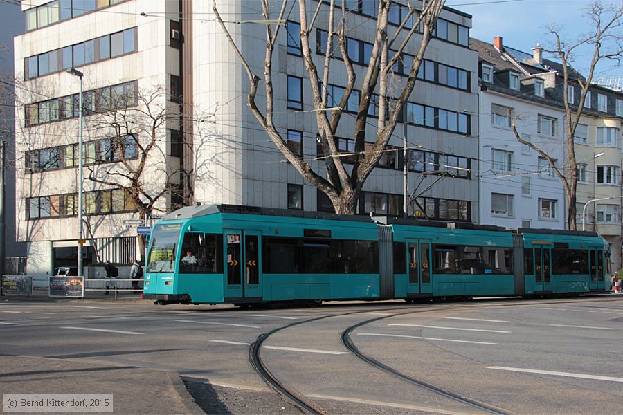 | Straßenbahn Frankfurt (Main) - 016 Triebwagen 016 auf Linie 15 nach Niederrad - Haardtwaldplatz bei der Haltestelle Stresemannallee / Gartenstraße, aufgenommen am 17. März 2015. Photo: Bernd Kittendorf (info@bernd-kittendorf.de) Homepage: www.bernd-kittendorf.de |