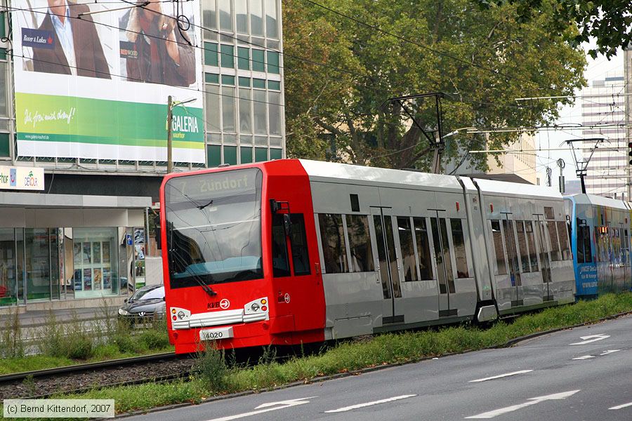 | Stadtbahn Köln - 4020 Triebwagen 4020 auf Linie 7 am 03. Oktober 2007 zwischen den Haltestellen Neumarkt und Heumarkt. Photo: Bernd Kittendorf (info@bernd-kittendorf.de) Homepage: www.bernd-kittendorf.de |