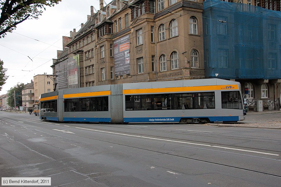 | Straßenbahn Leipzig - 1124 Triebwagen 1124 auf Linie 10 bei Abfahrt aus der Wendeschleife an der Haltestelle Wahren, aufgenommen am 05. Oktober 2011. Photo: Bernd Kittendorf (info@bernd-kittendorf.de) Homepage: www.bernd-kittendorf.de |