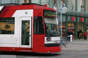 Triebwagen 209 auf Linie 4 nach Ludwigshafen Oggersheim, aufgenommen am Berliner Platz am 30. September 2007.